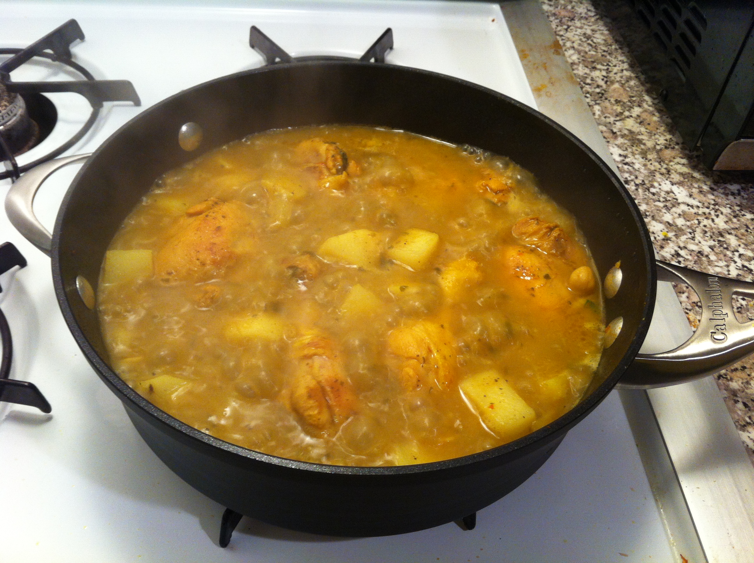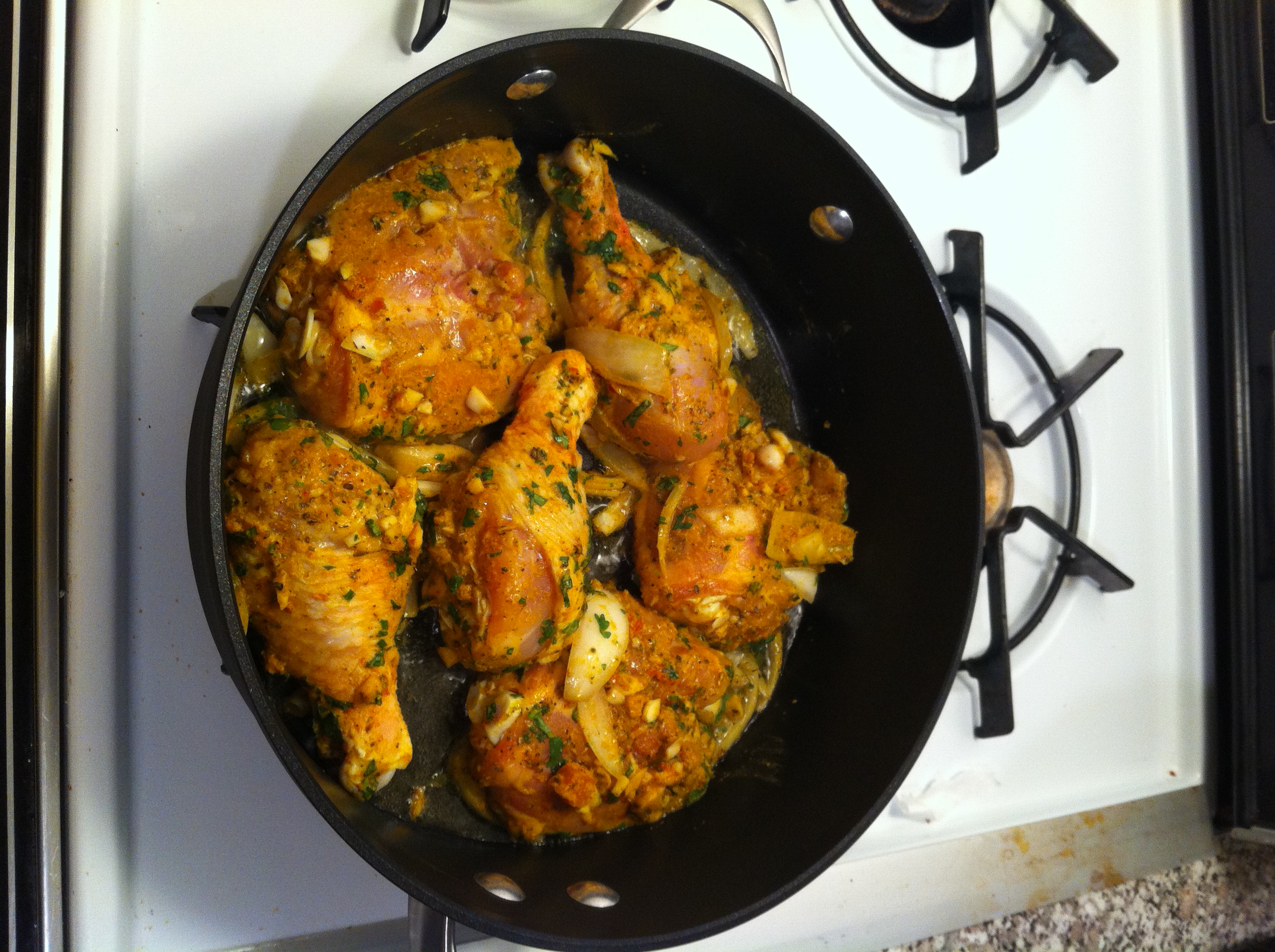 –          Chicken thighs and drumsticks (depending on the meat market, they may sell packs of chicken labeled “chicken for curry stew.” If not, a diced whole chicken or mixed back with thighs and drumsticks will do) I always cook about 2lbs of chicken.