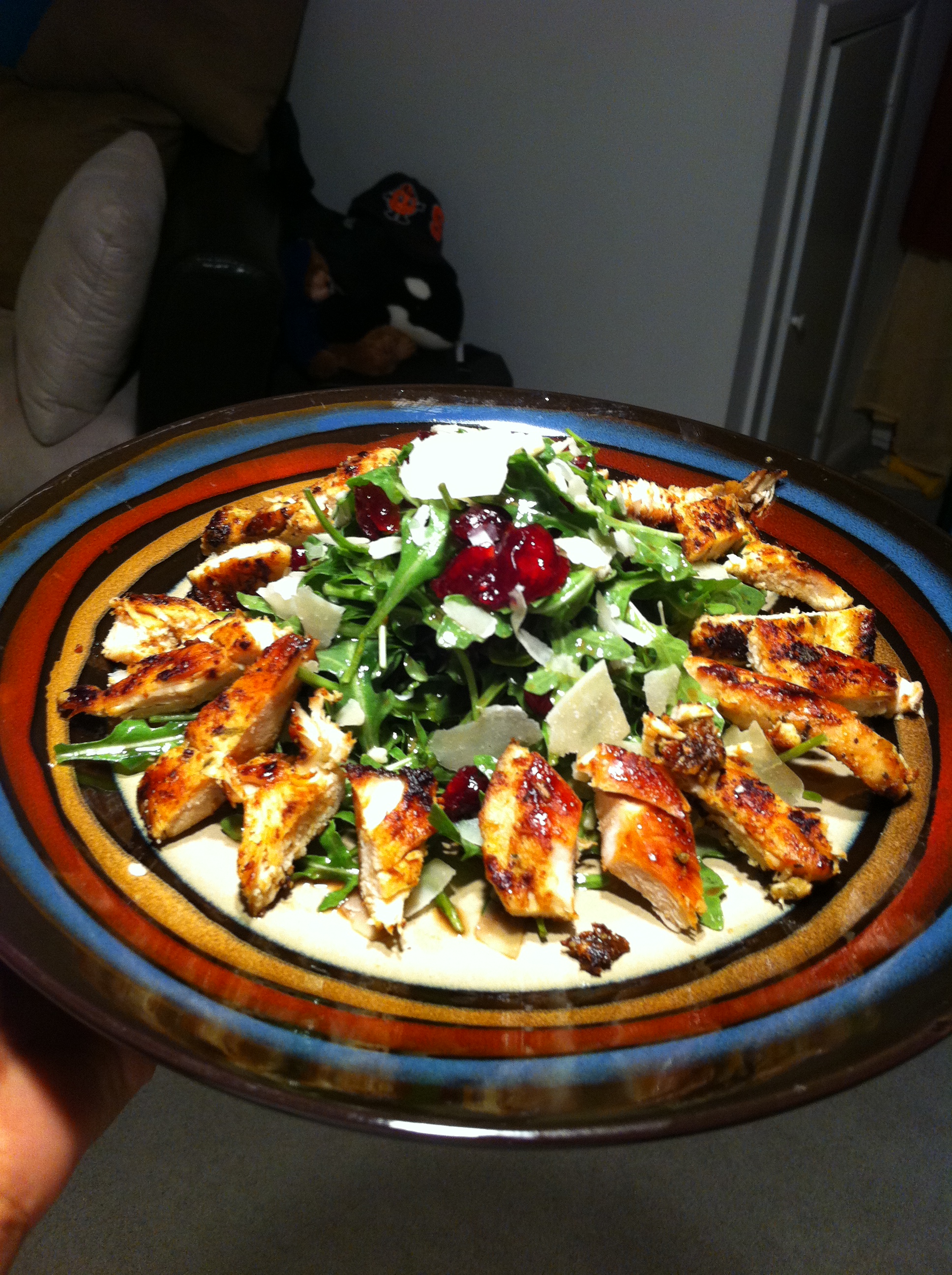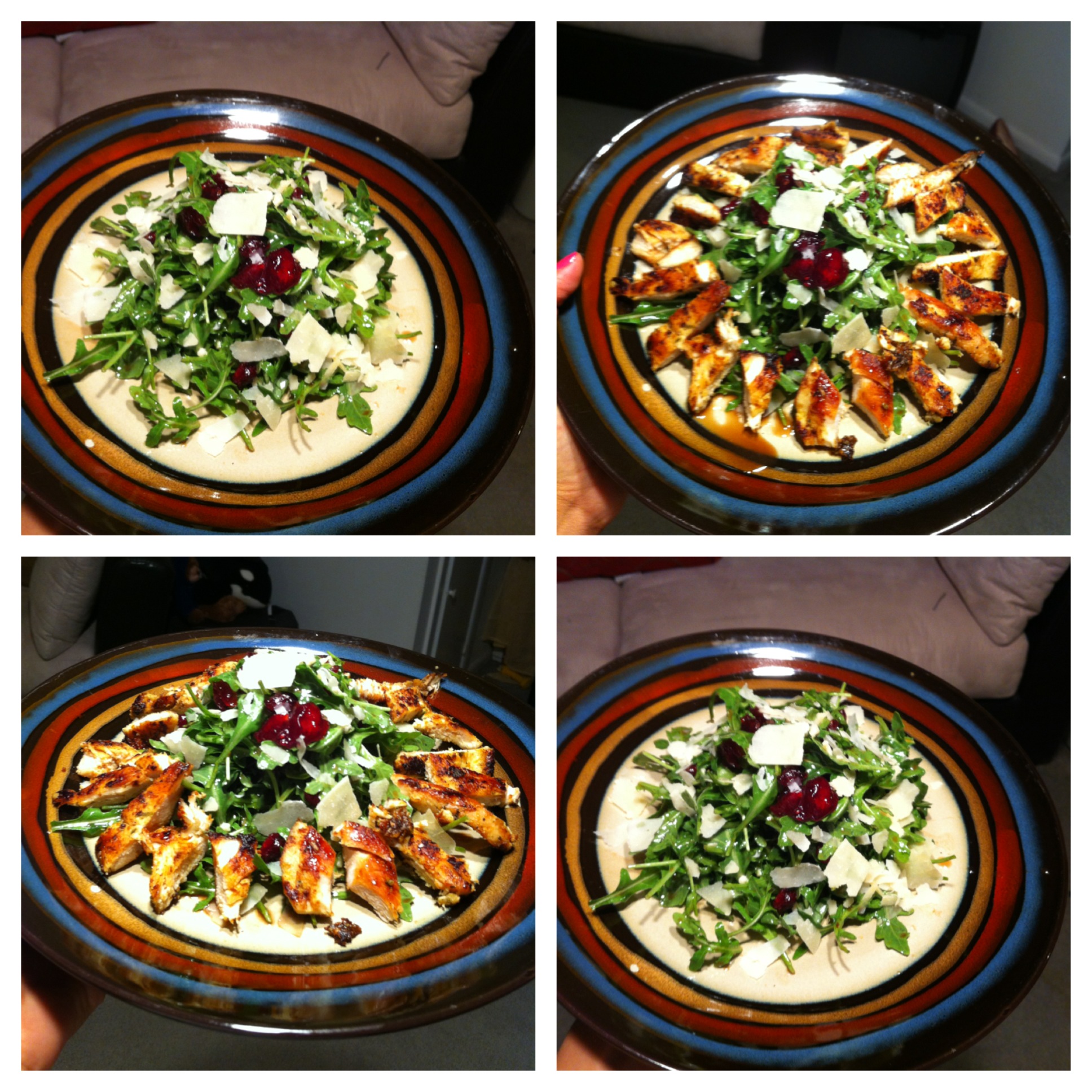 Summer is here and if you’re like me then you like to keep it light in the sunlight. This arugula salad is a perfect heat wave meal. It’s quick and easy. As you already know, I LOVE arugula. This green lends itself to great bold flavors. For my dieters– lemon juice and olive oil is all you need with arugula if you’re trying to keep the calories low. Below is my recipe for a lunch/dinner favorite…. Chop’t beware, I may have one up on you!